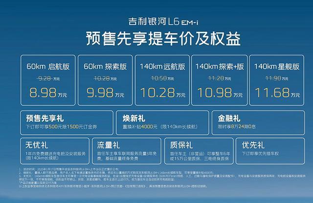 降3.3万!吉利银河新L6预售8.98万起 续航超2000km
