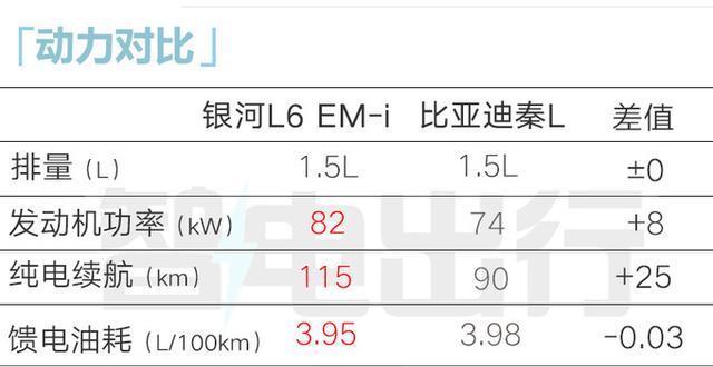 L6 EM-i搭载1.5L插电混动系统,发动机最大功率82kW,匹配19.09kWh磷酸铁锂电池,纯电续航115km,馈电油耗3.95L/100km。